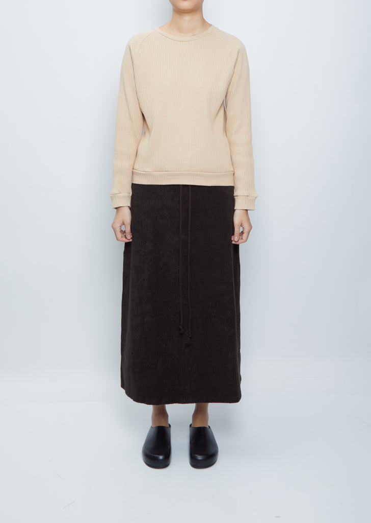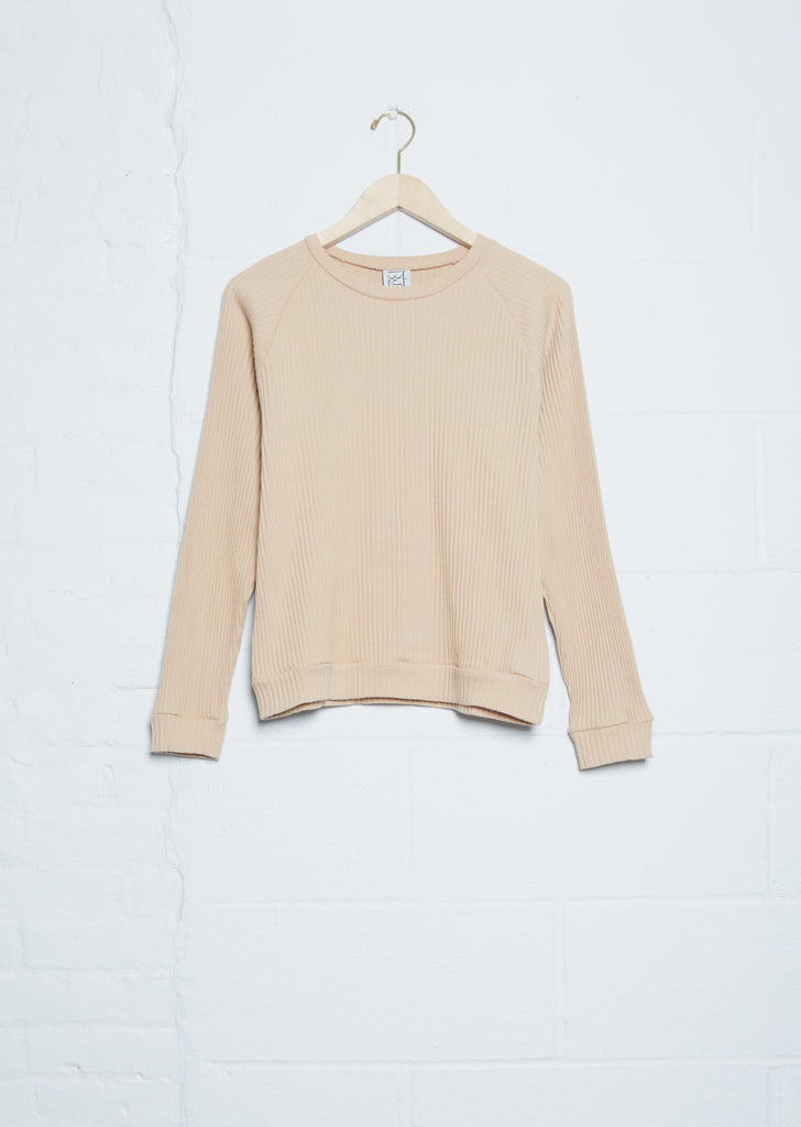 • Continued rib finishing with seam at the neckline, sleeve cuffs and hemline