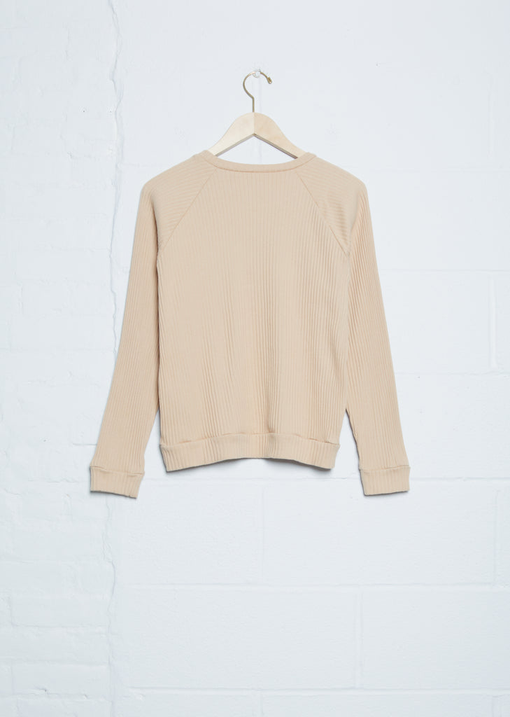 Baserange pale pink crewneck raglan sleeve sweatshirt in ribbed cotton jersey.