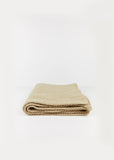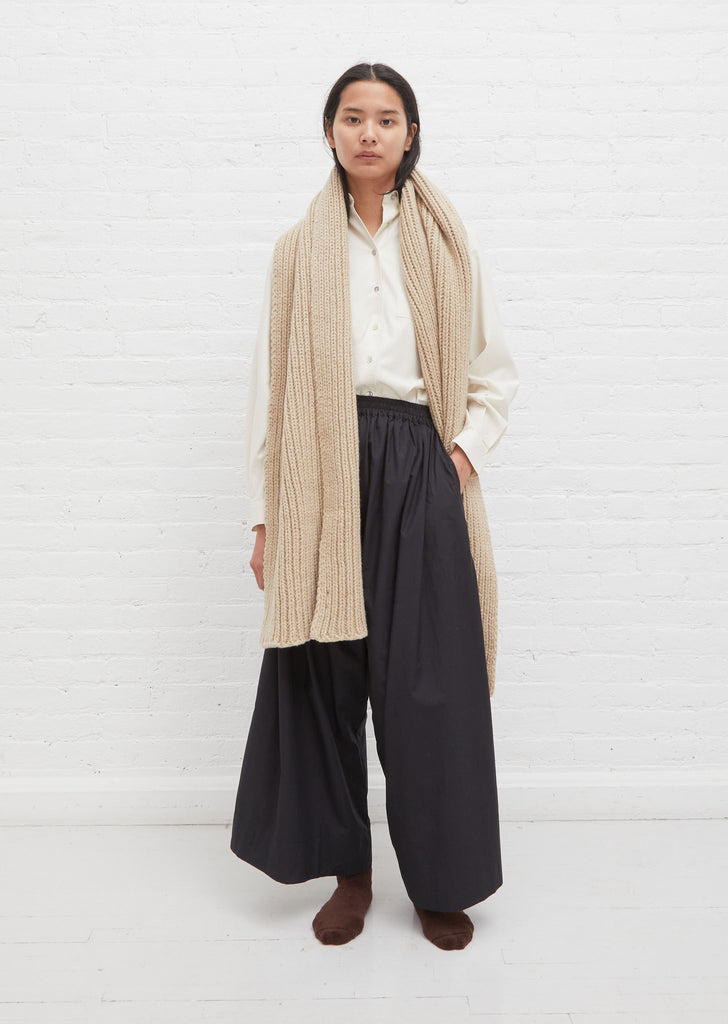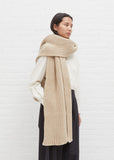 Baserange light camel tone chunky ribbed scarf knitted in soft alpaca.