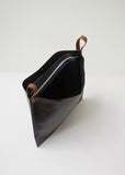 Measures 20"L x 17"H x 2"D. Color: Black. 100% Leather. Made in Japan.