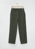 Casey Casey khaki green straight leg, full-length pants with a button fly in a washed cotton.