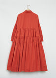 Casey Casey burnt orange oversized midi shirt dress with a voluminous tiered skirt in a lightweight washed cotton. A-line hem. Concealed side seam pockets.