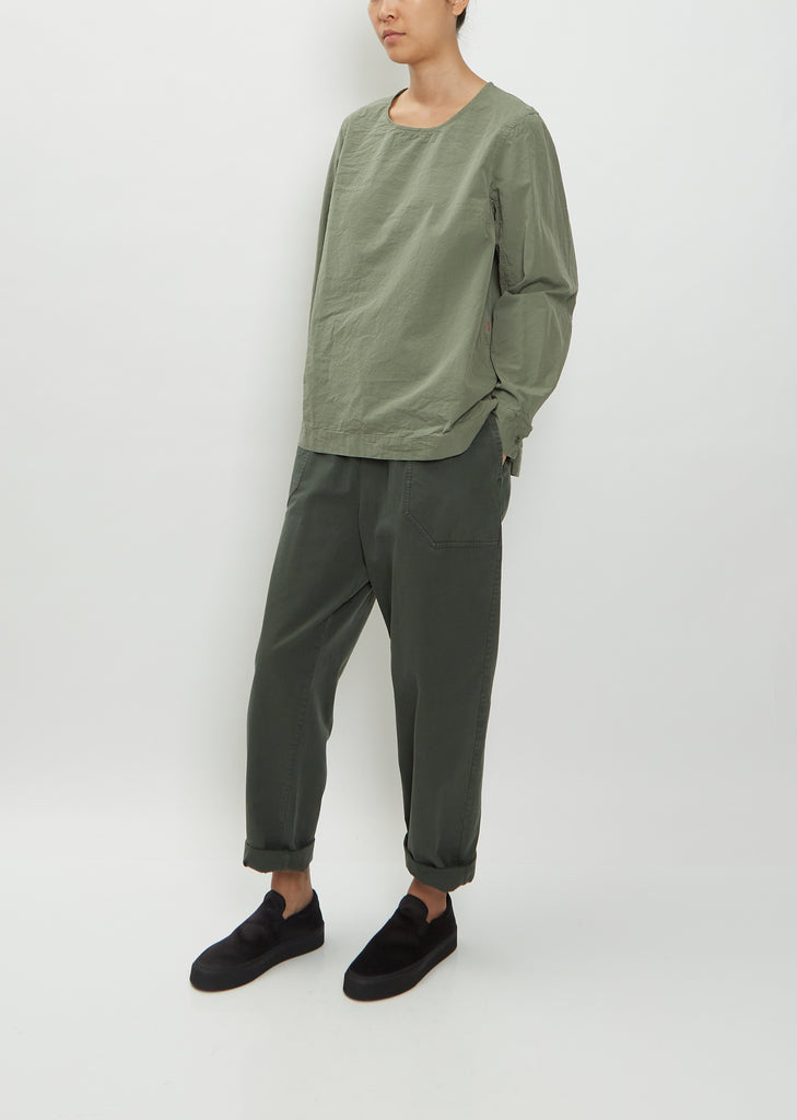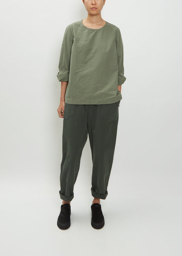 Casey Casey lichen green round-neck long sleeve blouse with a high-low in washed cotton.