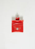 La Garçonne Holiday Exclusive — Camiel Fortgens signature wallet in red-glitter PVC with contrast white topstitching detail and silver-tone press clasp latch closure. Feature a main compartment with three additional front compartments.