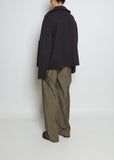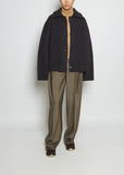 Kassl short collared coat with dropped shoulders and large front patch pockets crafted in a dark grey wool knit. Features rib trim finish at the sleeves and hem.