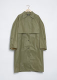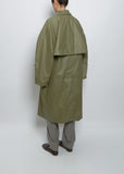 Kassl khaki oversized long layered pilot trench coat in a coated polyester blend.