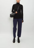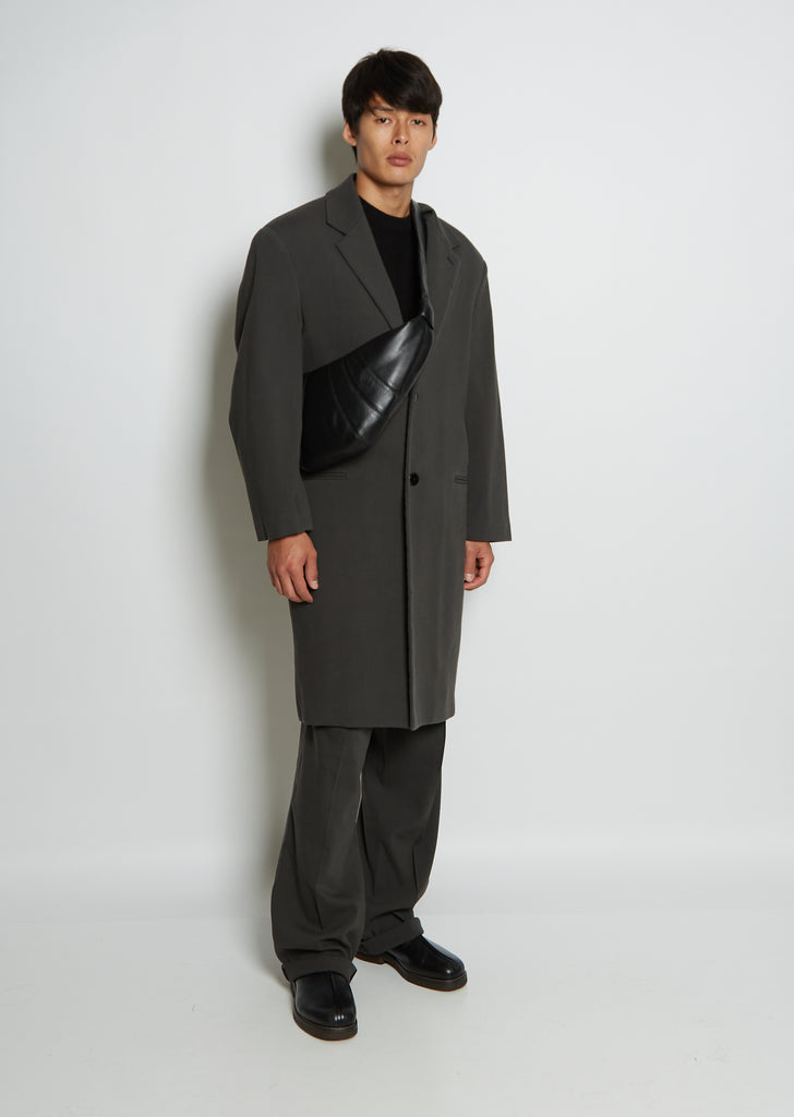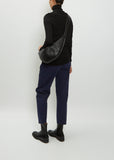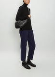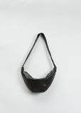 Lemaire signature medium croissant-shaped shoulder/crossbody bag with topstitching cutout detail, side-knotted strap and a tassel zip-top pull in smooth black nappa leather.