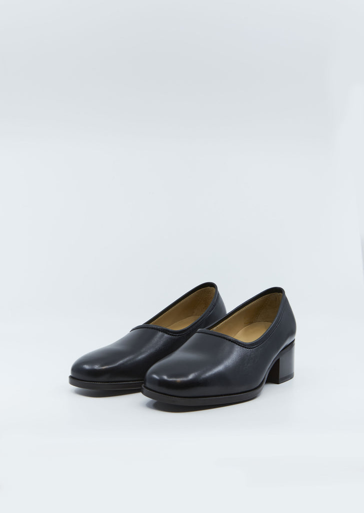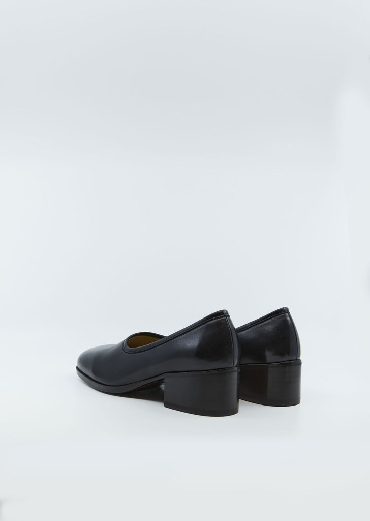 Lemaire signature loafer heels in smooth goat leather with a comfortable 2" (5 cm) stacked heel.