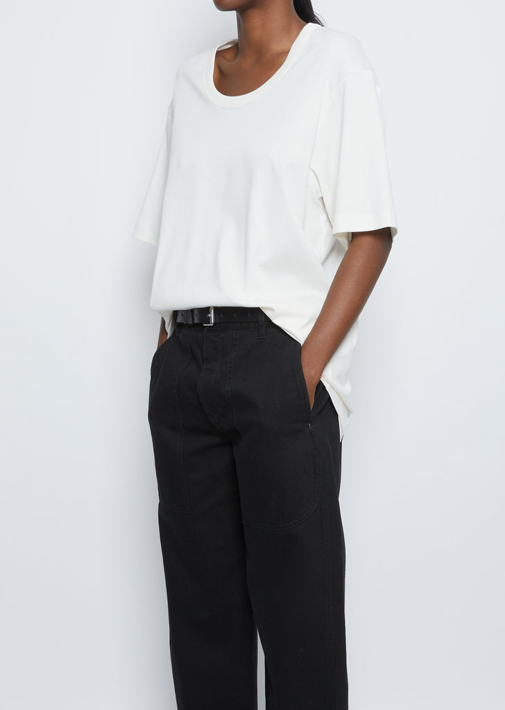 Lemaire black thin belt in a vegetable-tanned leather with a compact grain.