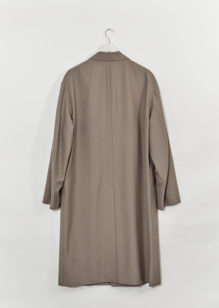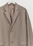 Spring-Summer '21 Collection — Lemaire signature single-breasted suit coat with a classic notch collar and flap front pockets in a lightweight wool blend. High vent at back. Fully lined with tonal viscose twill. Straight silhouette with an oversized fit.