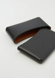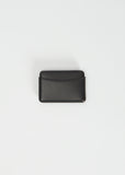 Lemaire black rectangular curved  card holder with two molded shapes which encase smoothly into one another in a smooth grained calf leather.