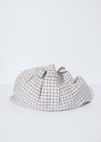 Anne Bag in a black on natural windowpane check pattern. A round flat tote in linen with pleating detail from Japanese homeware line, Fog Linen, whose beautiful and simple items are designed for daily use. Features wide straps to use a top handle bag; and can fit over the shoulder if over lighter garments.