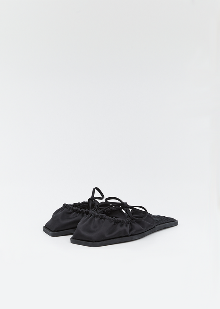 Color: Raso Noir. Shell: 100% Satin, Sole: 100%  natural rubber. Made in Italy.