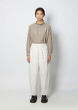 Danton high-waisted, cream, pull-on pants in a soft washed cotton. Features an elasticized waistband with inner drawstring and double front side slit pockets. Double back welt pockets with logo label. Slightly tapered leg with a loose fit.