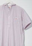 Spring-Summer '21 Collection — Danton shirtdress with light purple & white vertical stripes in garment washed cotton shirting. Shirttail hem. Single chest pocket with embroidered Danton logo. Concealed side pockets. Unlined.