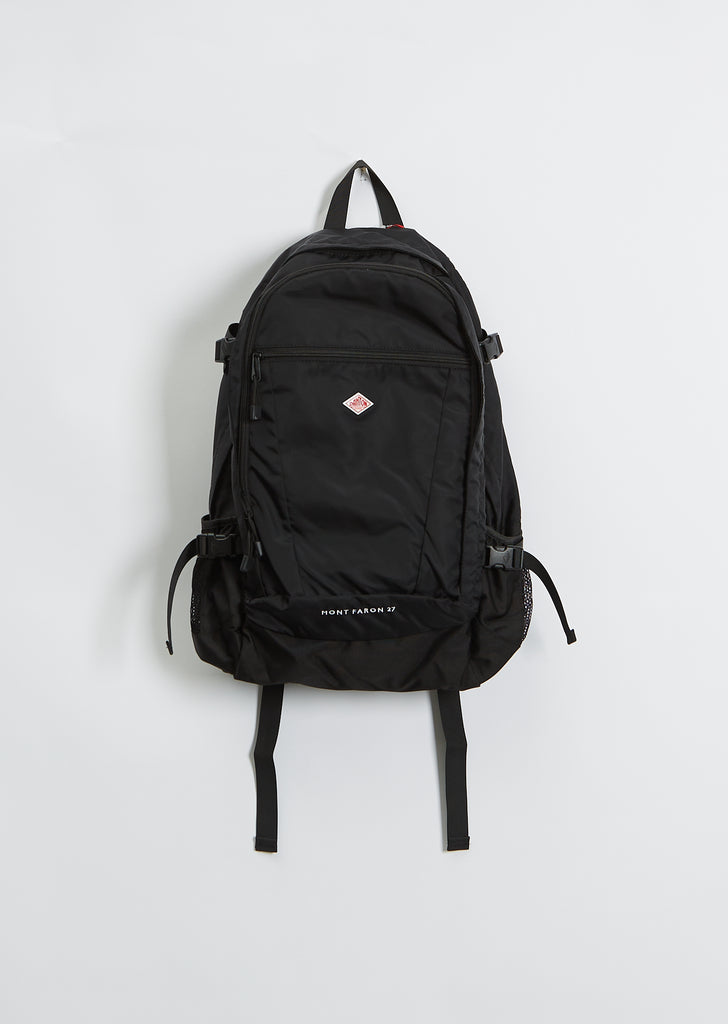 Danton black large backpack in a durable nylon twill. Designed with a front zipper pocket and dual top zipper compartments.
