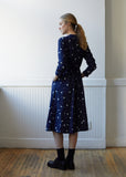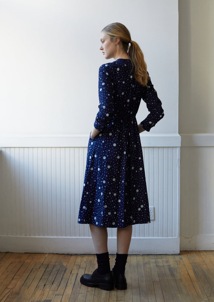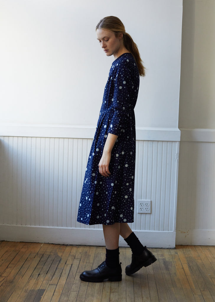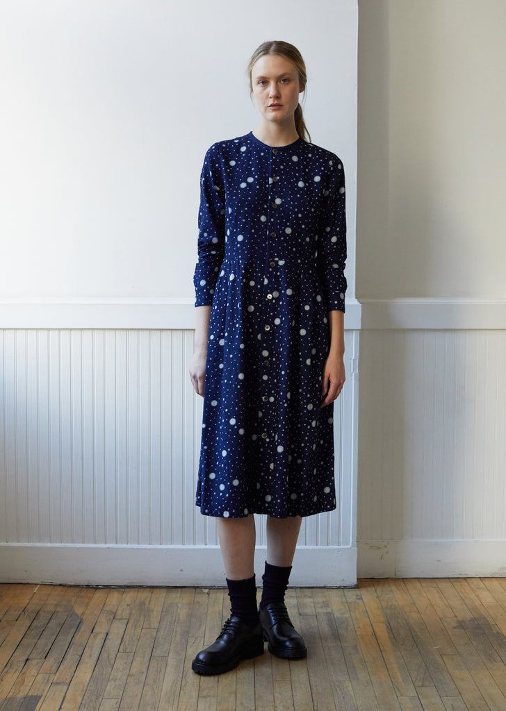 Women Indigo Yarn Dyed Flannel Snowflake Dot Pattern "Bassen" Dress