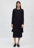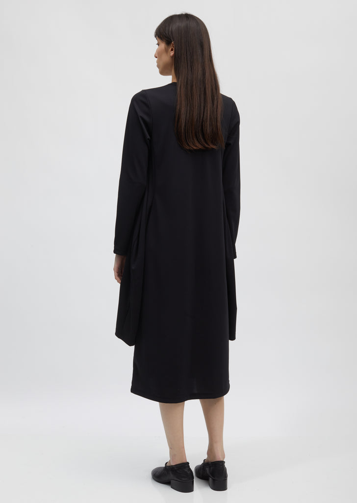 Black jersey long sleeve tee dress with attached sleeve detailing at side seams, from the main line of Comme des Garçons.