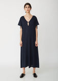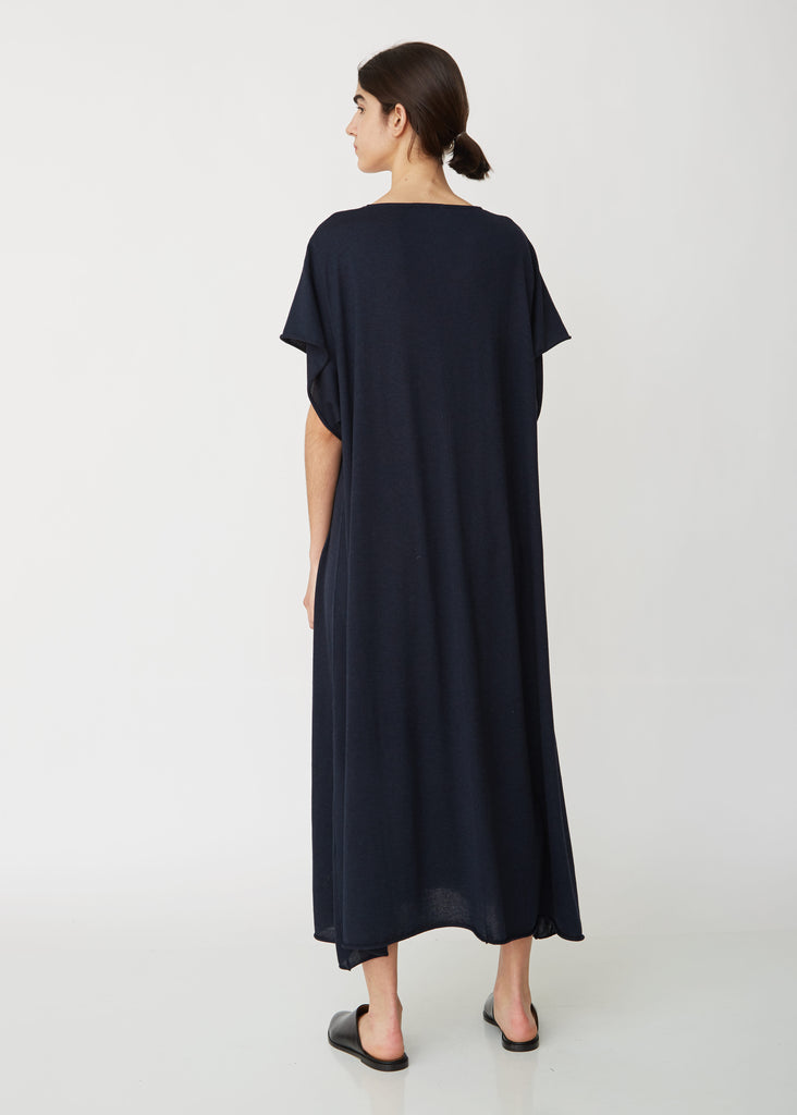 Navy Najad caftan dress in a luxurious cashmere and silk blend. Crafted in Italy with the label's signature relaxed fit. Open v-neckline and button keyhole closure. Clean, understated piece from the label's Spring 2019 collection. This dress comes in one universally-flattering size. Color: Navy. 70% Cashmere, 30% Silk. Made in Italy.