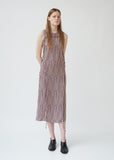 A silky crepe de Chine shift dress in an abstract etched-stripe print, outfitted with a system of cords that allow the wearer to quickly adjust the fit to her liking. From the multidisciplinary designers Mike Eckhaus and Zoe Latta, known for their sculptural silhouettes and unorthodox approach to textiles. Round neck; button-and-loop keyhole closure at back. Sleeveless. Cords run horizontally above bust and at back waist, and vertically down bodice and skirt. Straight midi hem; center back slit. Color: Multi. 100% Polyester. Machine Wash. Imported.