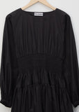 Molly Goddard Jeff Dress in a black lightweight cotton with subtle sheen. This long balloon sleeve dress has the label's signature elasticized smocking on the waist with a ruched bust and full skirt.