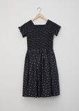 Molly Goddard Tilly Dress in a black mini floral print printed on a lightweight cotton. This short sleeved dress has the label's signature smocked bodice and sleeves with a shirred waist full skirt.