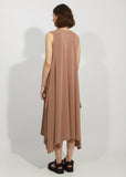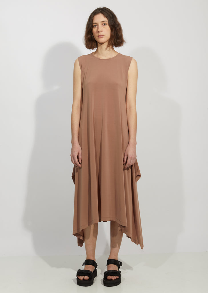 Rosy-beige sleeveless maxi dress in a silky technical jersey that spills into soft folds.