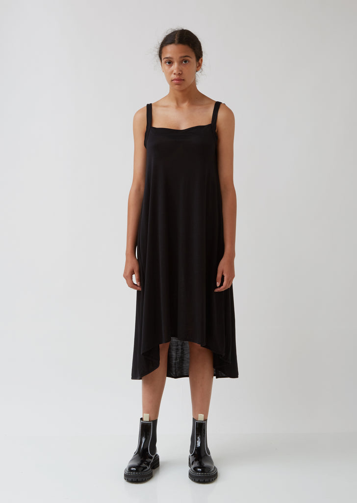 Black Tencel-jersey slip dress finished with adjustable knotted shoulder straps. Square neckline. Square-shaped back. Sleeveless. High-low hem. Midi length. Straight, relaxed fit.