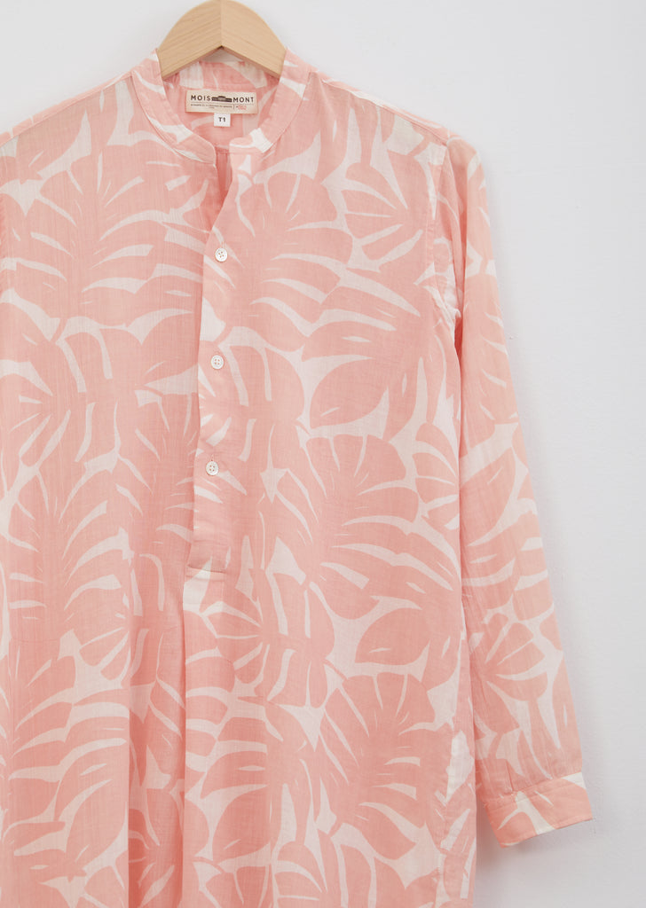 Moismont henley tunic dress in matis pink is crafted from lightweight cotton voile, for a breezy caftan perfect as an easy day dress or on the beach, designed in France and handmade in India.