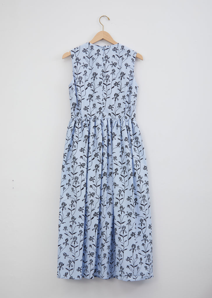 Exclusive to La Garçonne — Sofie D'Hoore Drissia Dress in Blue Flower Print. Crafted in cotton, this quintessential summer dress features a fitted sleeveless bodice with mini tucks at waist and a gathered full skirt. Slight empire fit. Made exclusively for La Garçonne by Sofie D'Hoore.