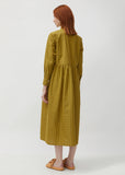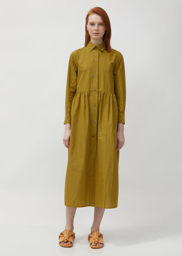 Banana-and-black bracelet-sleeve shirtdress crafted of Vichy-checked cotton poplin.