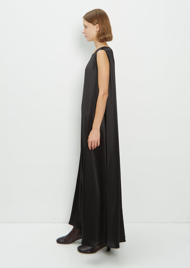 Dušan long voluminous tank dress with an inverted back pleat in black fluid silk.