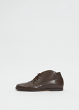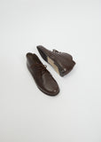Dušan brown lace-up oxford low-boot with a circular top shape and gusseted heel in smooth leather.
