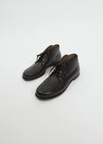 Dušan black lace-up oxford low-boot with a circular top shape and gusseted heel in smooth leather.