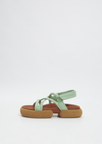 Dries Van Noten mint green strappy mesh chunky sandals with a velcro ankle strap in a smooth leather.