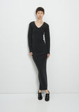Extreme Cashmere charcoal front and back ribbed V-neck sweater with exposed seams in stretch cashmere knit. Closer fit.