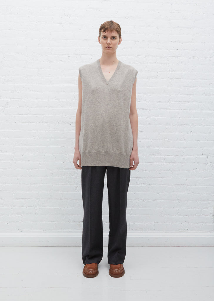 Extreme Cashmere long V-neck sweater vest in a stretch cashmere blend. Ribbed neckline, armholes and hem. Straight silhouette with a relaxed, slightly oversized fit.