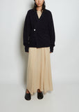 Extreme Cashmere classic oversized V-neck cardigan with saddle sleeves and patch pockets in stretch cashmere blend. Features an inner drawstring and additional side button to wear fitted at waist.