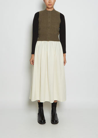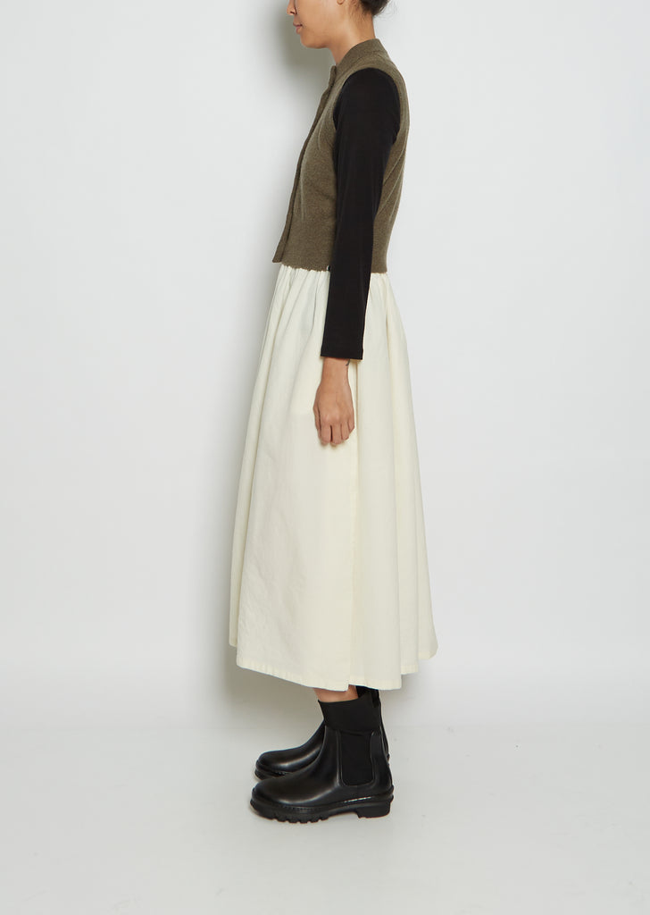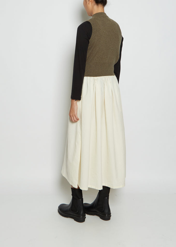 Edition 21 — Extreme Cashmere corset-style knit vest with wide rib trim finishes in a Laurier green melange cashmere blend. Also available in Felt.
