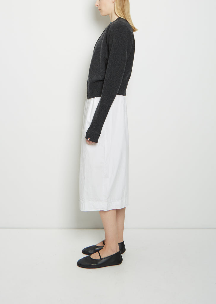 Edition 22 — Extreme Cashmere charcoal crewneck cardigan sweater with a blouson fit in stretch cashmere knit. Rib trim finish at neck, sleeve cuffs and hem. Can be worn as a sweater or cardigan.