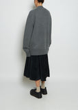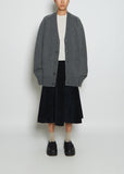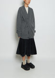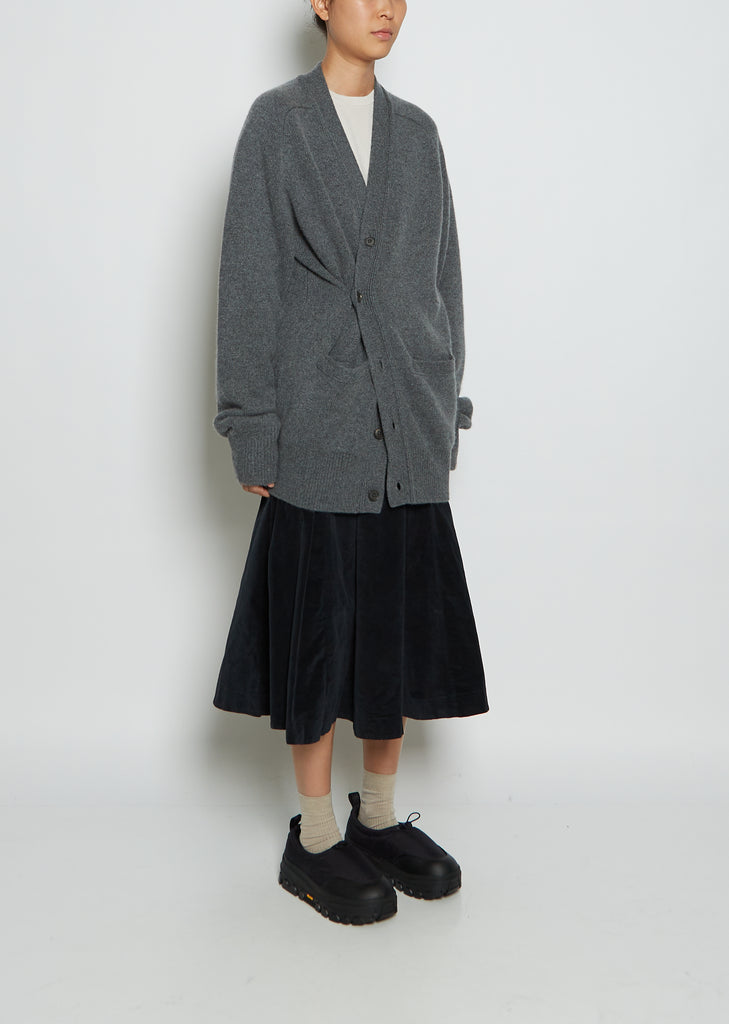 Edition 21 — Extreme Cashmere oversized v-neck cardigan sweater with front patch pockets and long saddle sleeves in felt grey heavy gauge cashmere. Detailed with an extra button at right side to wear closer at waist.