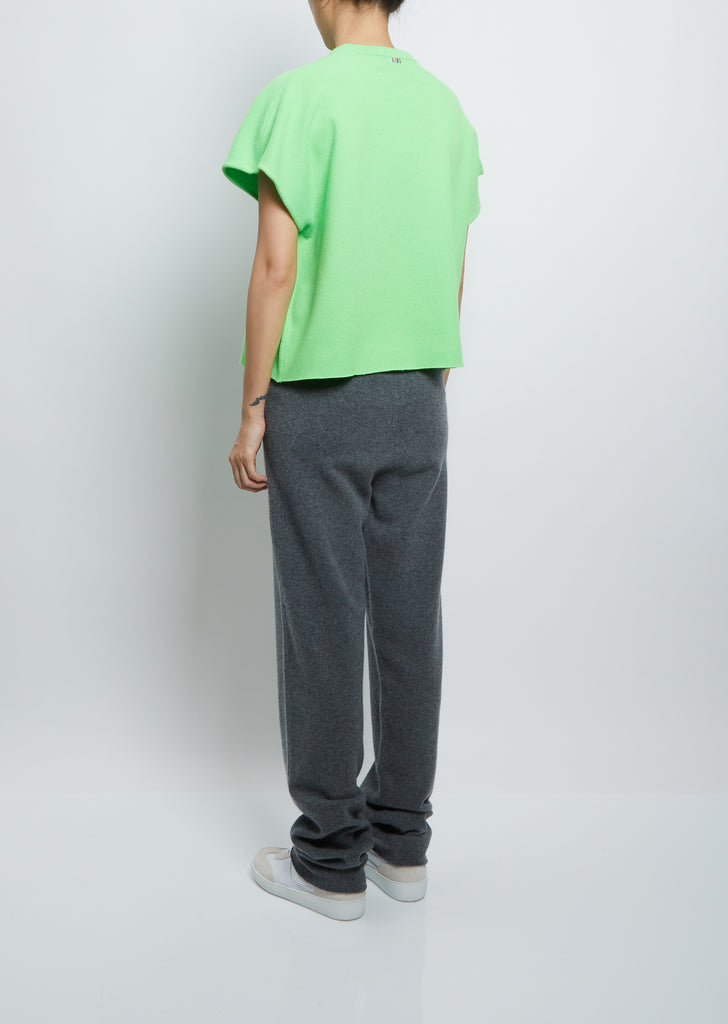 Extreme Cashmere florescent green crewneck sweater with seamless short sleeves in a stretch cashmere blend knit. Also available in Geranium.