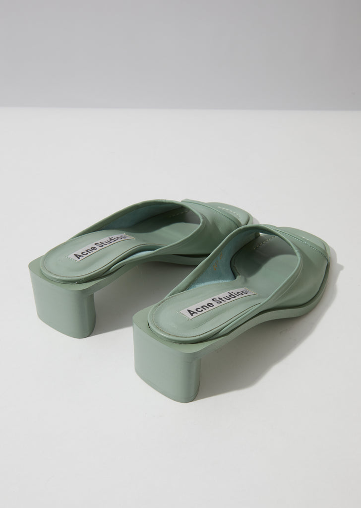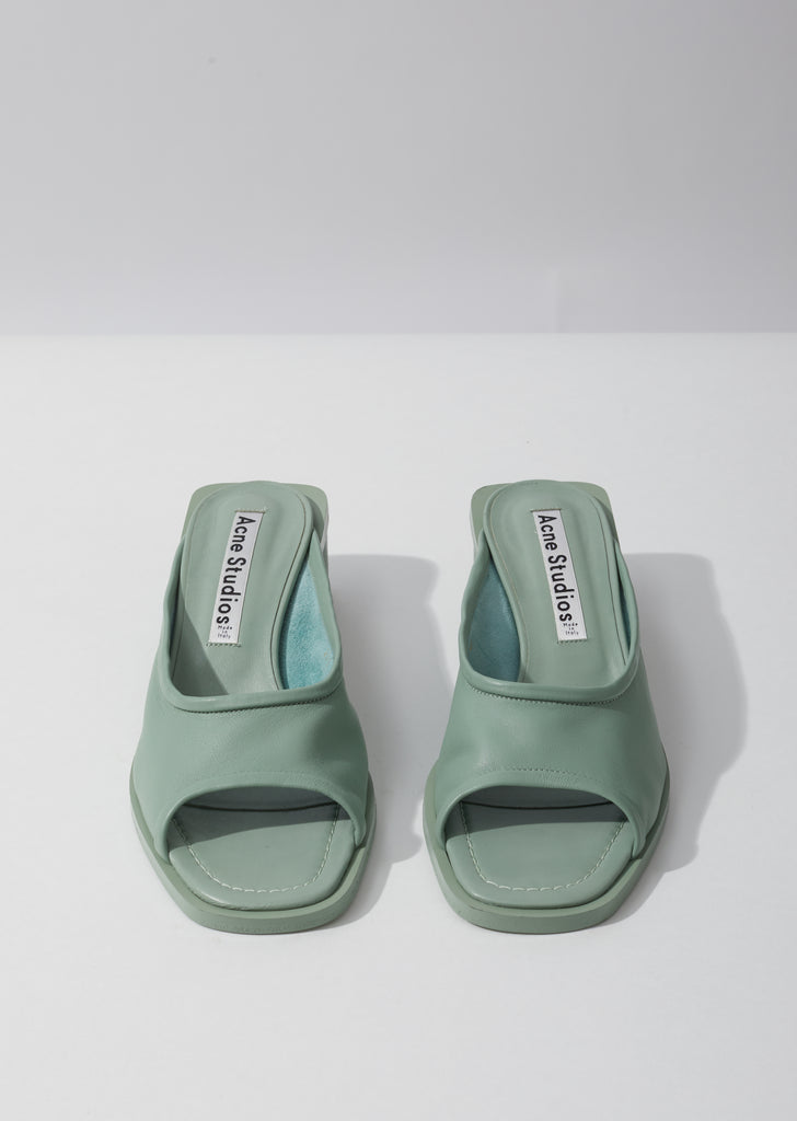 Green open-toe mid-heel mule crafted of Nappa lambskin leather.