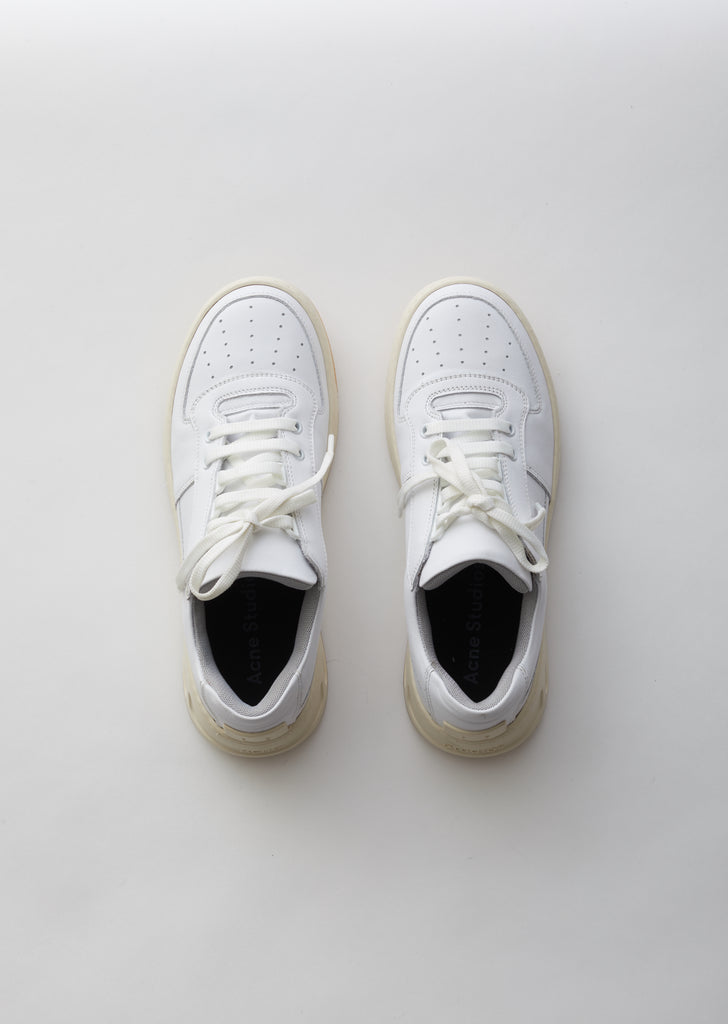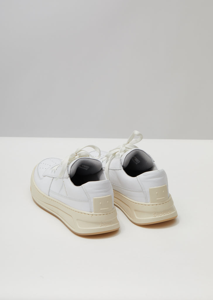 White lace-up low-top sneaker in panels of smooth Nappa leather, finished with the brand’s signature rubberized Face patch at the heel counter.