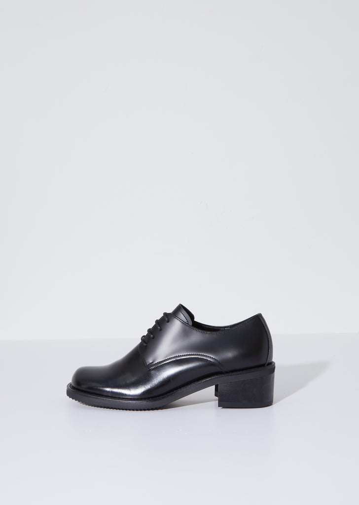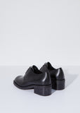 New Designer — Amomento Derby Shoes in Black. Classic square toe clean oxfords with tonal laces and a block heel.