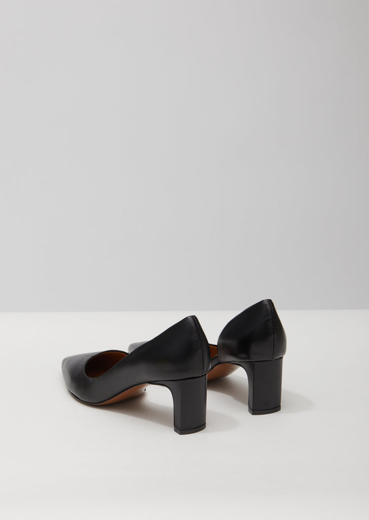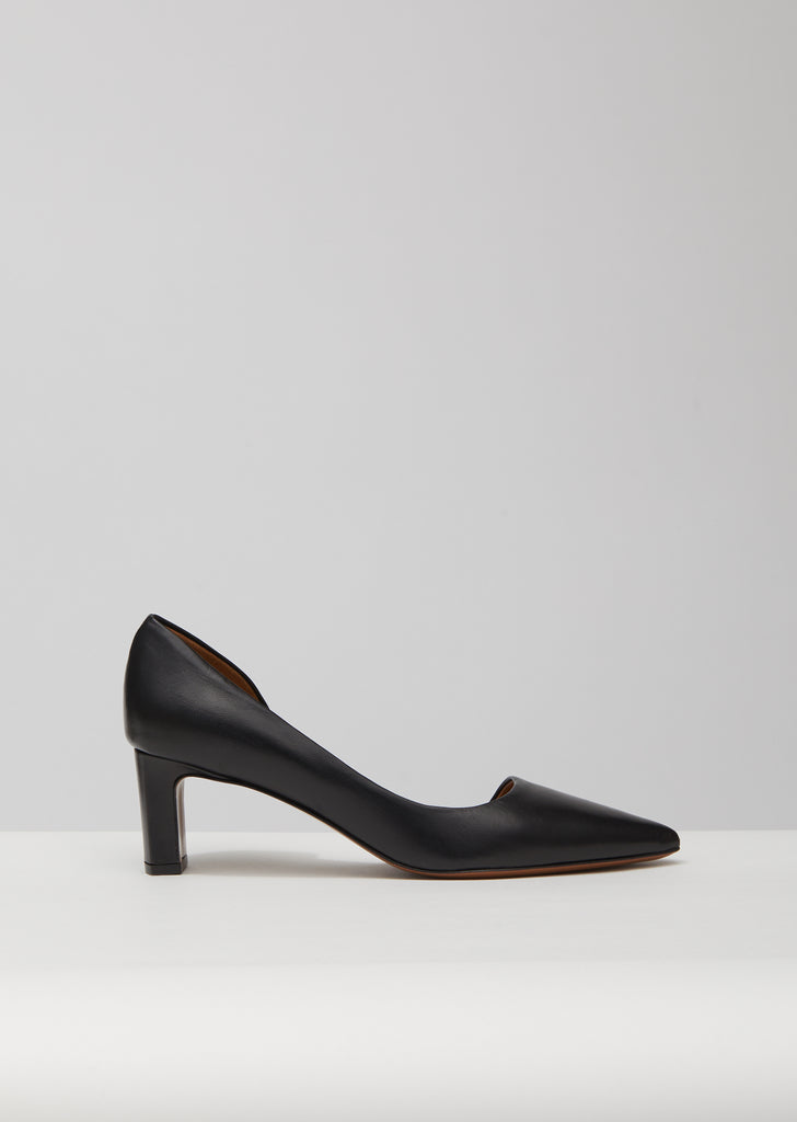 Black pumps in metal-free Nappa lamb leather, designed with d’Orsay-inspired inner cutouts.