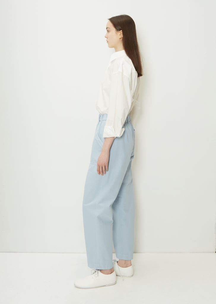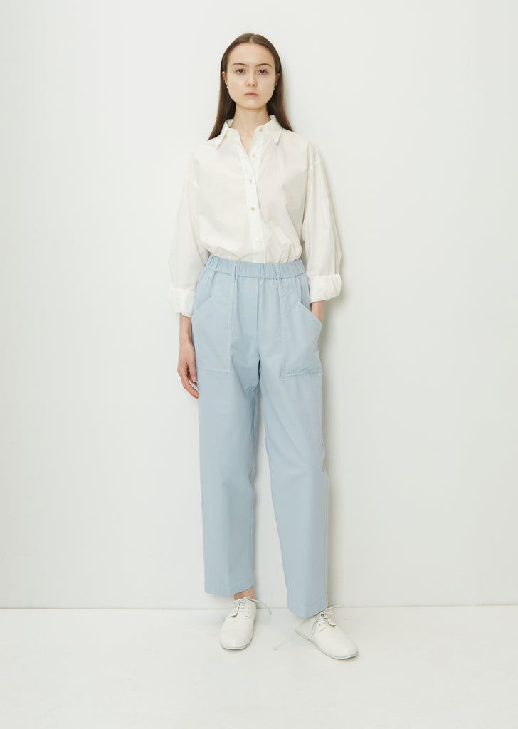 Forte Forte cielo cargo pants with elasticized waist in cotton. Features two front patch pockets, single back patch pocket, and belt loops. Pulls on. Relaxed fit.