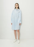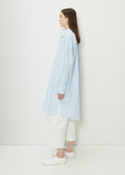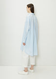 Forte Forte sky blue knee length shirt dress in cotton poplin. Features two chest patch pockets, button front closure, and shirt tail hem with longer back and side slits. Unlined. Oversized fit. Can be worn as a tunic shirt.