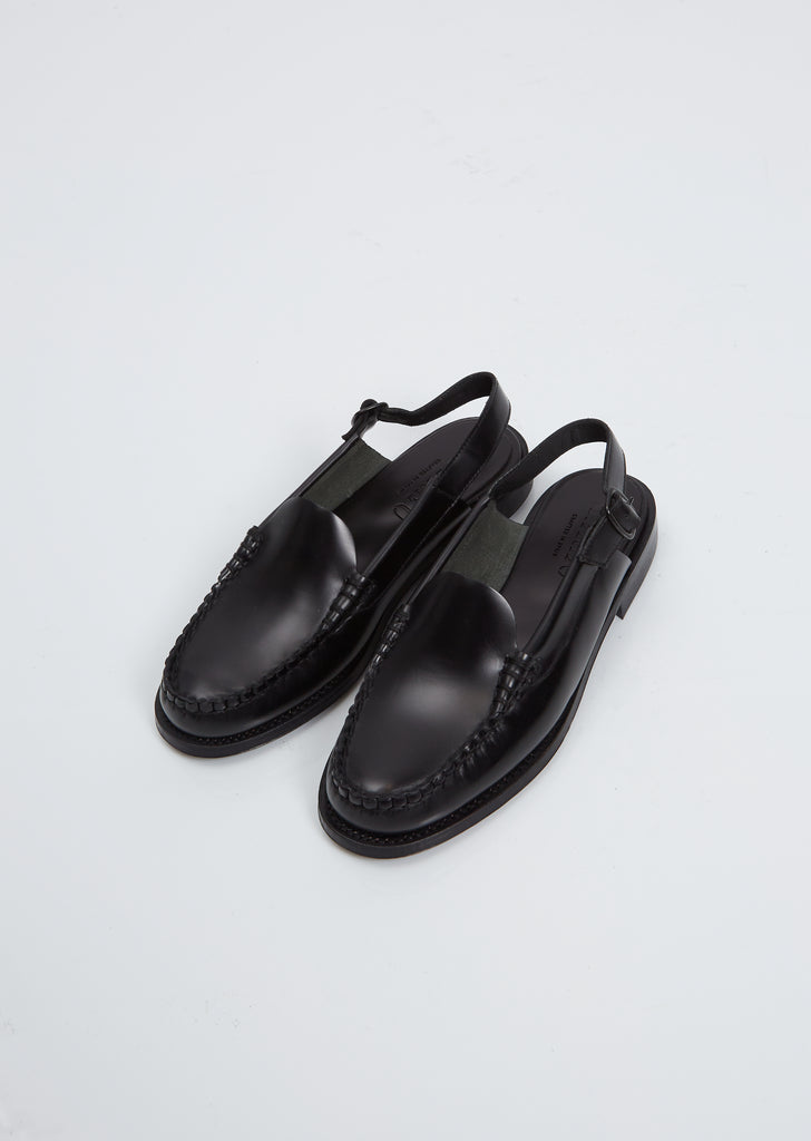 Hereu black slingback loafer mule in a Spanish full-grain calf leather, handcrafted in Spain.