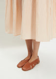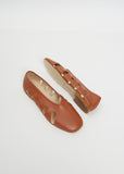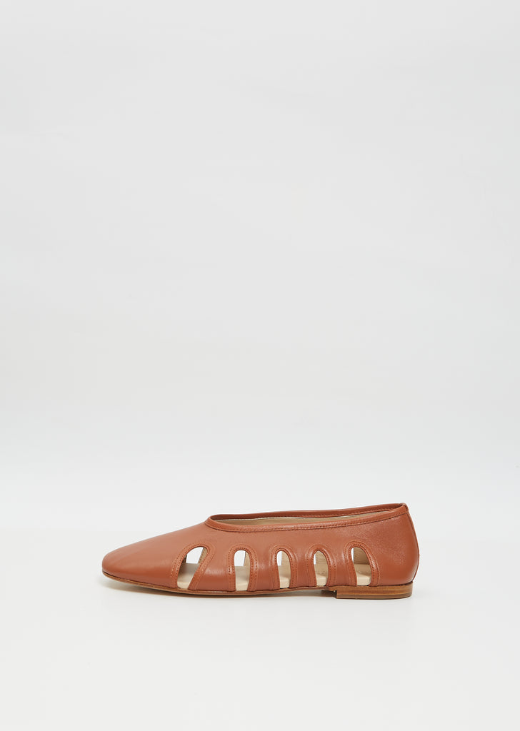 Hereu tan high-cut flat pump with cutout details crafted in supple lambskin and lined in lamb leather.